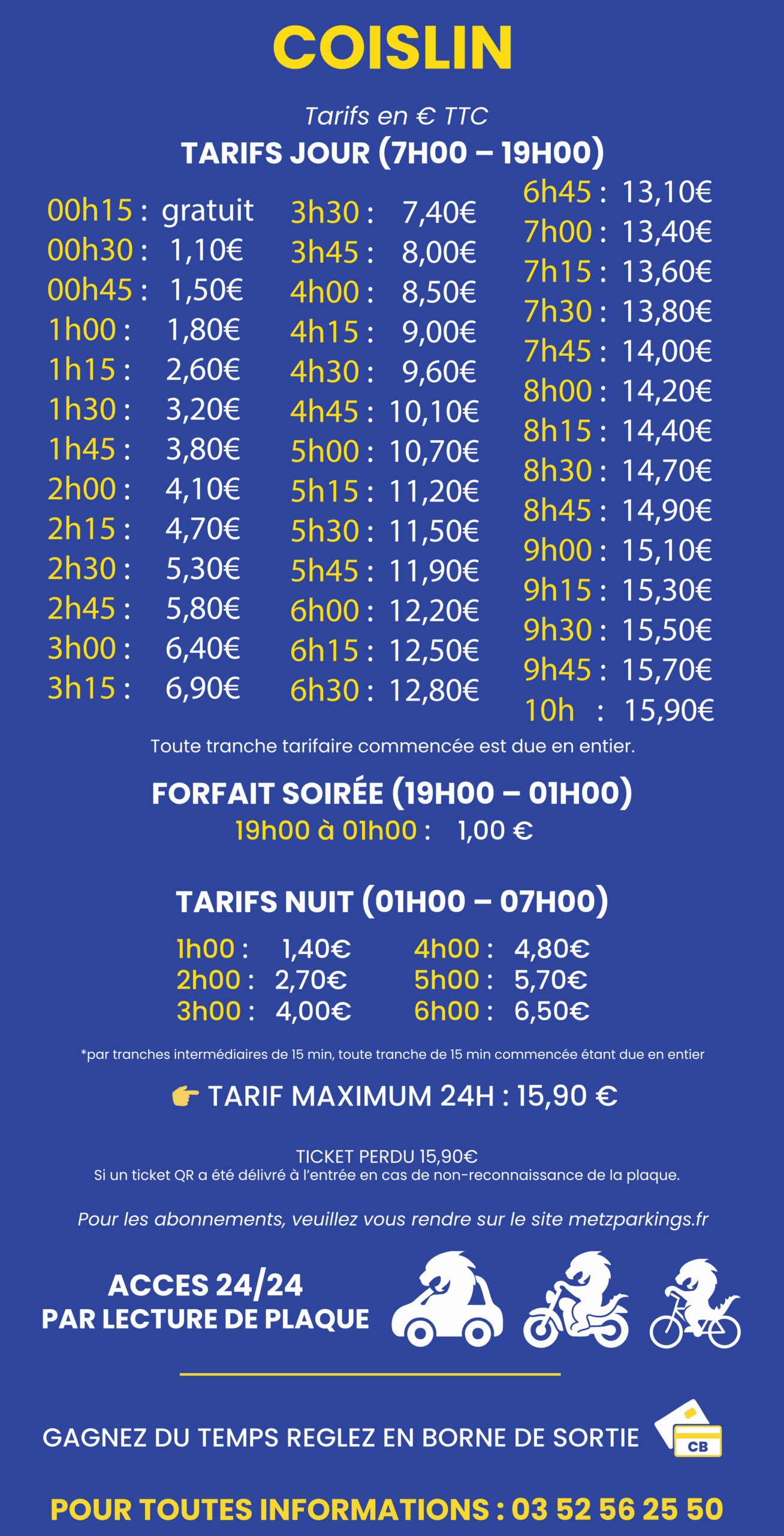 Découvrez nos tarifs de stationnement, disponibles en abonnement ou en tarifs horaires.