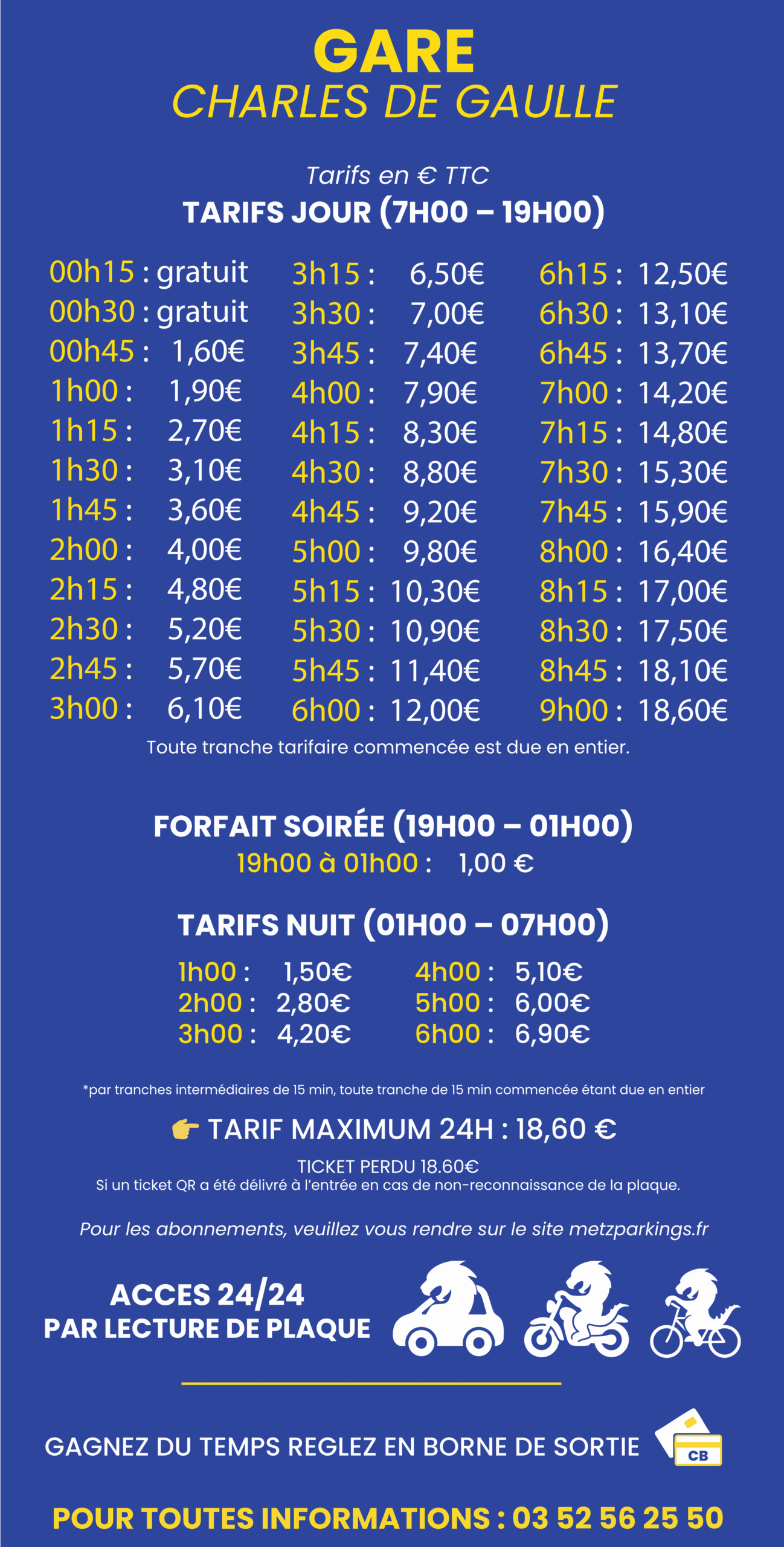 Découvrez nos tarifs de stationnement, disponibles en abonnement ou en tarifs horaires.